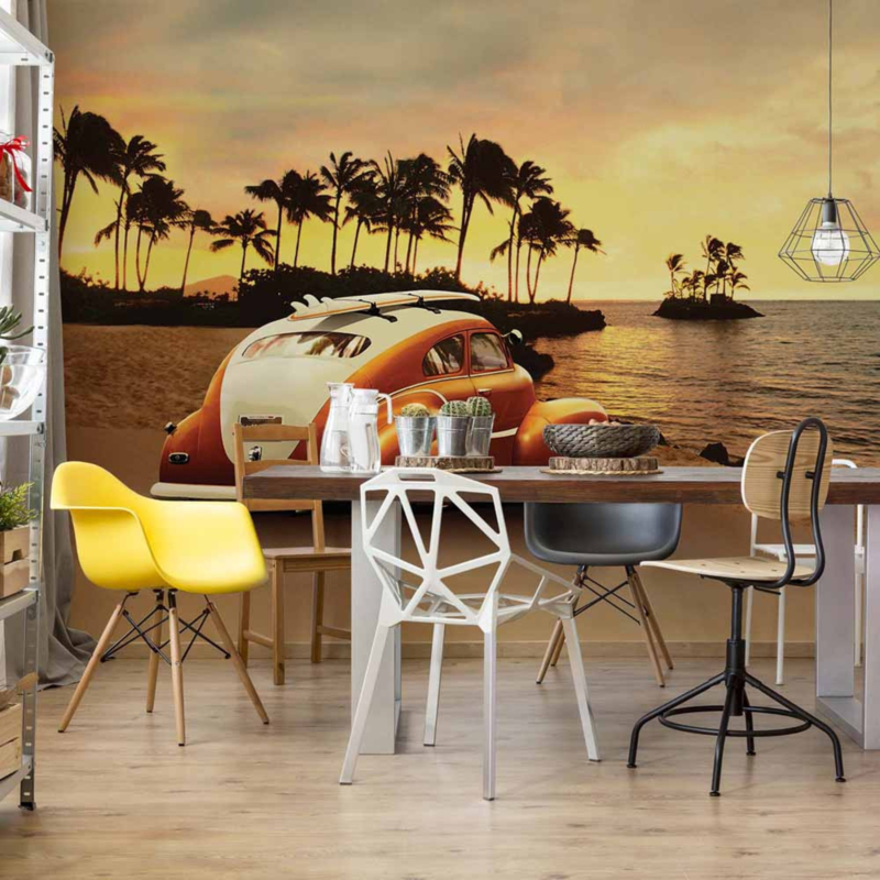 Fotobehang Sunset Beach by Car
