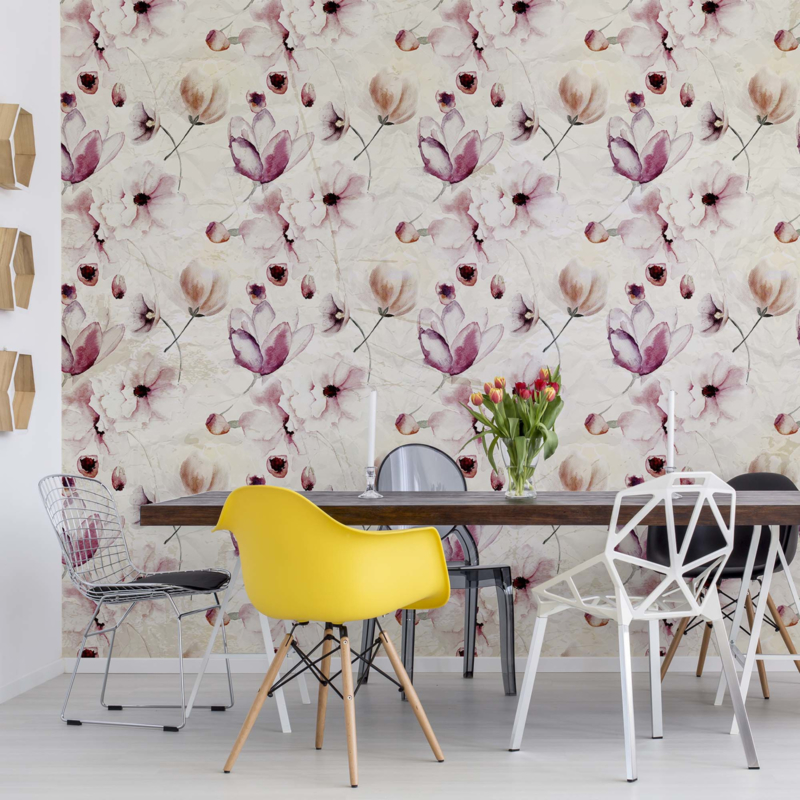 Fotobehang Magnolia Flowers Pattern Pink