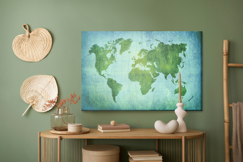 Canvas print Green-Blue World Map